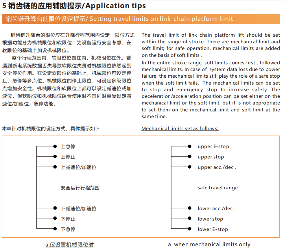 伊特剛性鏈升降臺的限位設(shè)定提示
