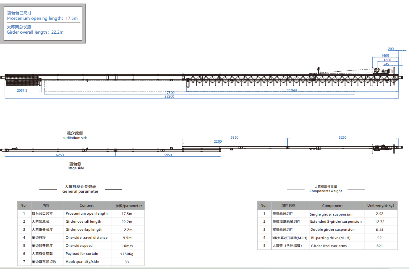 大幕機選型圖 17.5m/22.2m