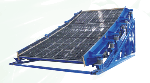 由于受承載極限轉(zhuǎn)速的限制及篩框結(jié)構(gòu)強(qiáng)度的影響,目前國(guó)內(nèi)的傳統(tǒng)振動(dòng)篩不易做到高頻化、大型化。等厚分段篩分為多段篩分單元,各篩分單元分別獨(dú)立振動(dòng),使得各篩分單元均可實(shí)現(xiàn)較大的振動(dòng)強(qiáng)度,大振動(dòng)強(qiáng)度可大幅度提高振動(dòng)篩的生產(chǎn)率和篩分效率,同時(shí)使篩子實(shí)現(xiàn)了大型化。各篩分單元的獨(dú)立振動(dòng),對(duì)機(jī)架的振動(dòng)得以分散,可降低整機(jī)的振動(dòng)強(qiáng)度,由于等厚分段篩在設(shè)計(jì)原理上所具有的優(yōu)點(diǎn),使得等厚分段篩具有使用壽命長(zhǎng),噪聲低,對(duì)廠房影響小的特點(diǎn),是一種環(huán)保型篩分設(shè)備。