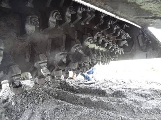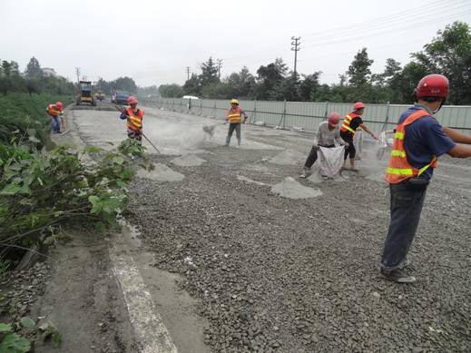 2014年6月,我公司冷再生機(jī)首次進(jìn)入四川施工。先進(jìn)入四川的是一臺(tái)600馬力WR2300L冷再生機(jī),由河南隆裕工程公司于2011年向我公司購(gòu)買,已工作了近四年,機(jī)器狀態(tài)仍然很好。冷再生工程為郫縣唐太路道路改造工程,主要路基的大修采用冷再生工藝。唐太路為水穩(wěn)路基結(jié)構(gòu),與華東等大部分地區(qū)不同的是路基下有大量的鵝卵石,這會(huì)對(duì)銑刨轉(zhuǎn)子造成很大的磨損,如果機(jī)器不是裝備了可折卸刀庫(kù)重型轉(zhuǎn)子,這個(gè)工程是不可能做下去的,刀具的損耗很大,齒套也有較大的磨損。施工隊(duì)伍在高經(jīng)理的帶領(lǐng)下,無(wú)論是施工速度還是施工質(zhì)量均獲得管理方的好評(píng),打消了承包方最初對(duì)國(guó)產(chǎn)設(shè)備的疑慮。
