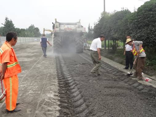 鄰近的沙西線也在做冷再生工程,由于是同一承包工程公司也中標(biāo)了其中一段路,這套冷再生機(jī)組被調(diào)去做了一段試驗(yàn)段,兩天干了7560平方米,這個(gè)屬于正常的施工速度。相鄰標(biāo)段有一臺(tái)進(jìn)口的WR2000,一天只能干1800-2000平方,無(wú)論是業(yè)主、施工管理方還有其它配套機(jī)械都對(duì)這個(gè)工作速度不滿意,甚至連撒水泥的民工意見都大得很,因?yàn)樗麄兊墓ゅX也是按平方結(jié)算的,想多干而不可得。項(xiàng)目部協(xié)調(diào)我們這臺(tái)WR2300L去打了一段,實(shí)際驗(yàn)證速度確實(shí)更快。項(xiàng)目部這才確定不能盲目推崇進(jìn)口機(jī)器,國(guó)產(chǎn)機(jī)器也是可能勝過(guò)進(jìn)口機(jī)器的,很快,項(xiàng)目部與用戶簽定了合同,退掉WR2000,租用我們的機(jī)器,我們推薦的是比WR2300L速度更快的機(jī)械傳動(dòng)RZ2300冷再生機(jī)。