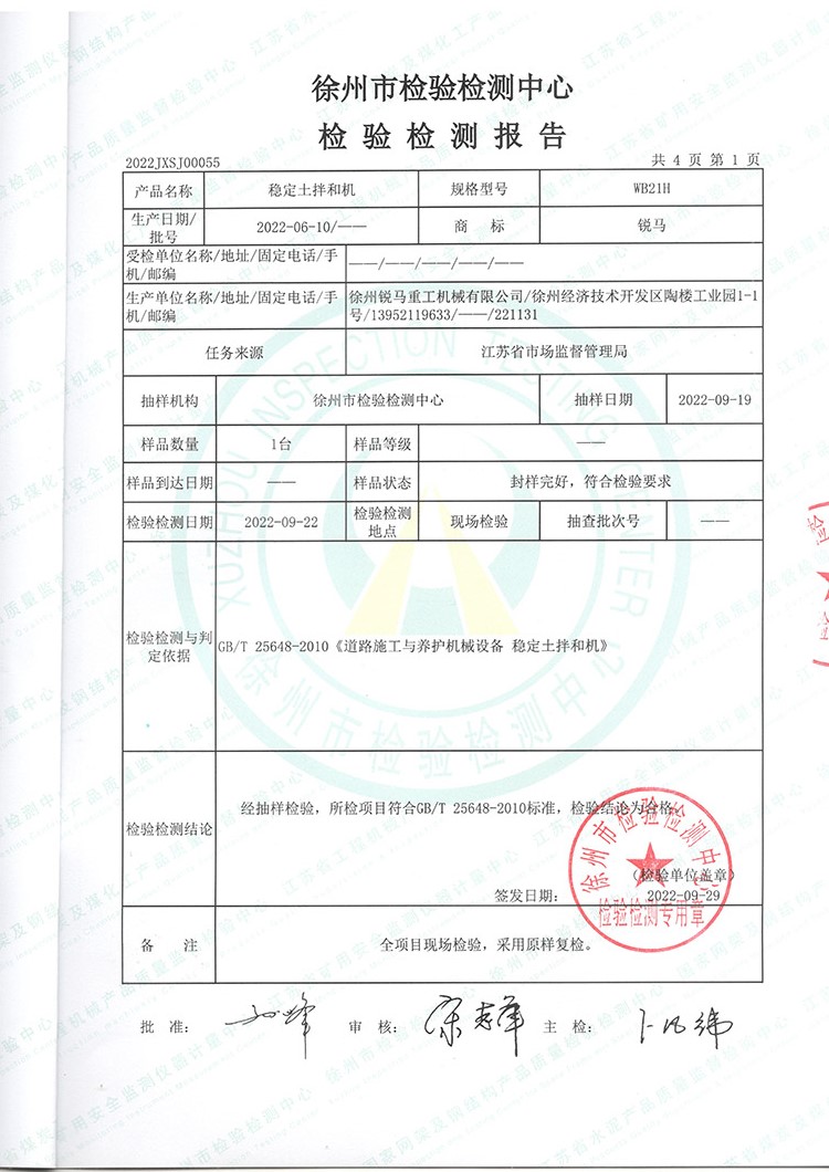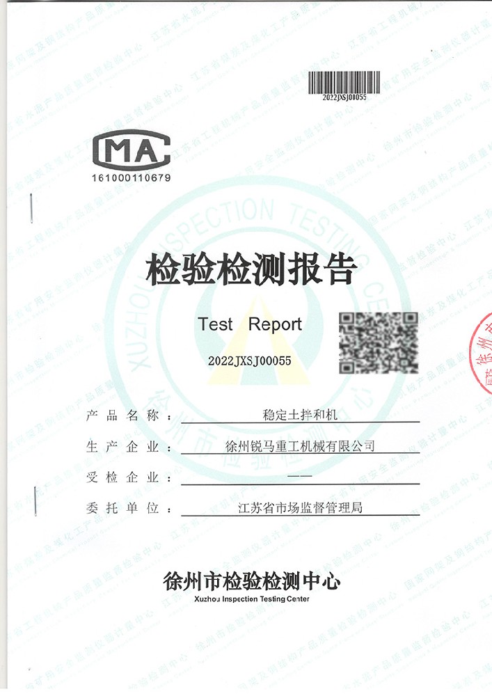 受江蘇省市場監(jiān)督管理局委托,徐州市檢驗(yàn)檢測(cè)中心近期對(duì)我公司產(chǎn)品穩(wěn)定土拌和機(jī)做了整機(jī)檢測(cè)。